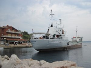 Ganz verwundert sind wir, als am Morgen früh das Wasserschiff von Zadar auch hier fest macht. Haben die so wenig Wasser? Ja, sie sagen das es seit mehr als zwei Monaten nicht mehr geregnet hat. Jetzt wissen wir, warum es kein Wasser für die Boote gibt.
