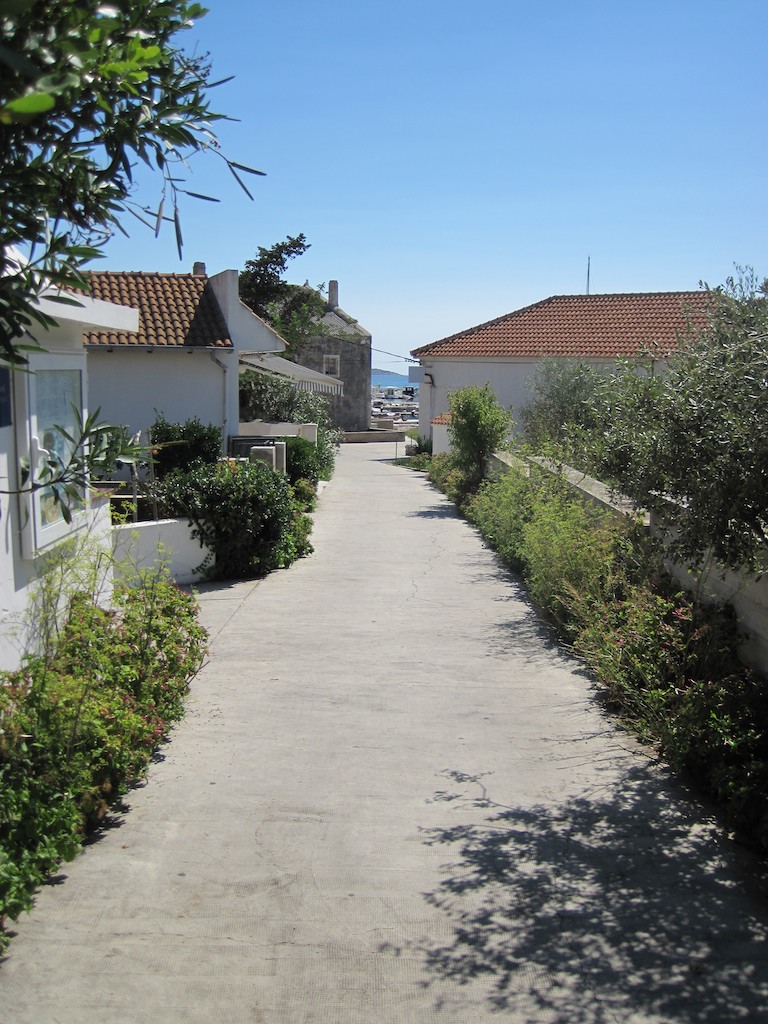 Zwei schöne Buchten und natürlich der Berg Straza. Die 175 Meter wollen wir Heute bezwingen. Unsere erste Bucht haben wir schon bald umlaufen. Dieses Dorf gefällt uns auf Anhieb. Die vielen Bäume und erst die Kirche. Sieht toll aus.