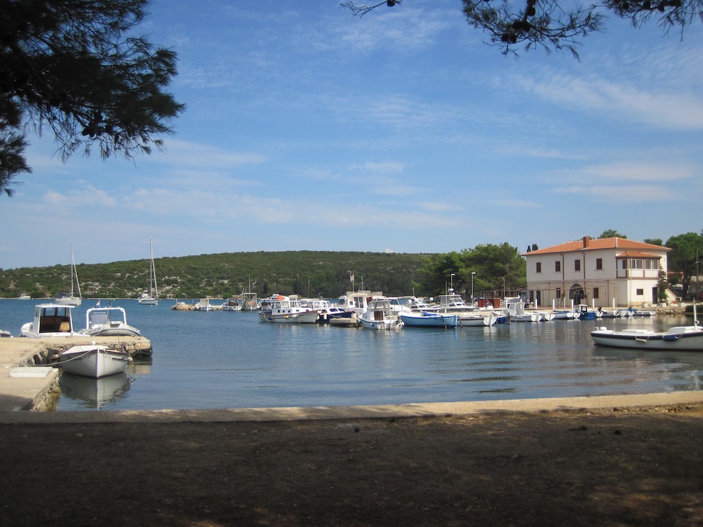 Halb neun ist noch alles ruhig und wir legen ab. Westlich umrunden wir den “Schmetterling” und segeln mit etwas Genua nach Ilovik. Im Frühling waren wir ja kurz eine Nacht hier und haben den neuen Steg angeschaut. Jetzt wollen wir in “ausprobieren”. Der Steg ist ganz leer als wir ankommen. Keiner da um zu helfen. Kein Problem. Oder doch? Ein Knopf in der Leine und etwas Wind und schon liegen wir quer am Steg. Festmachen und Mooringleine belegen. Da sind wir nun. 1A kann ich da nur sagen. Der Steg, nicht das Manöver 😉