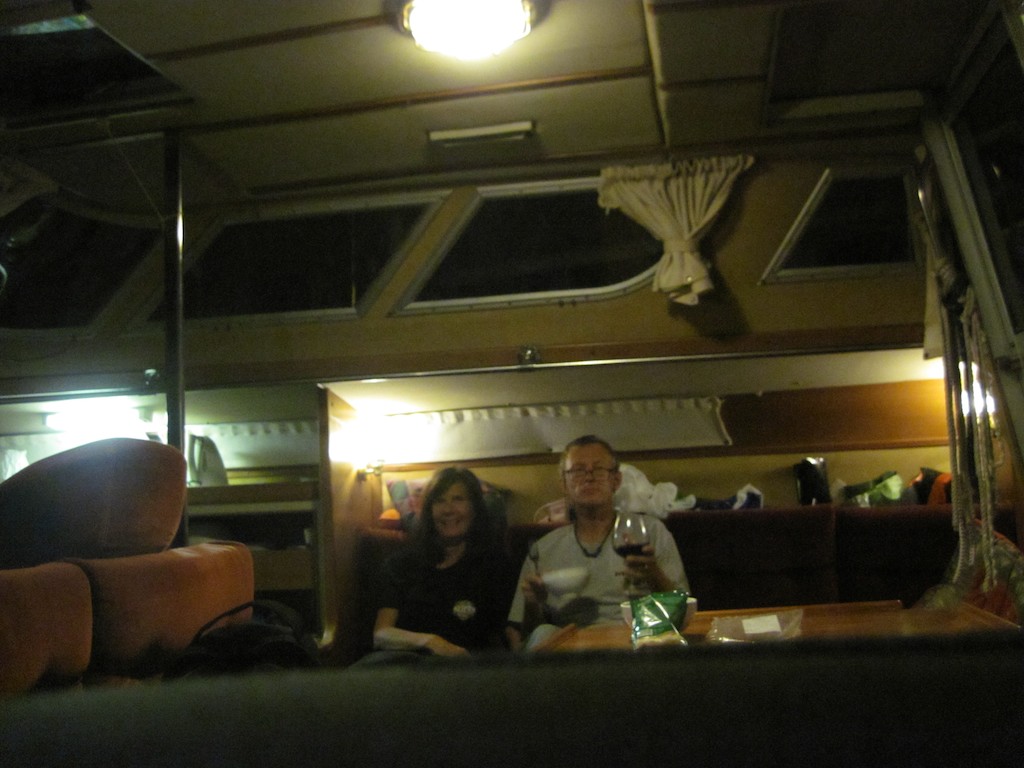 Mit einem Bellini beladen, Gaby ist ganz happy, ziehen wir uns zurück auf die Ulalena. Wir haben keine Lust auf Regen.