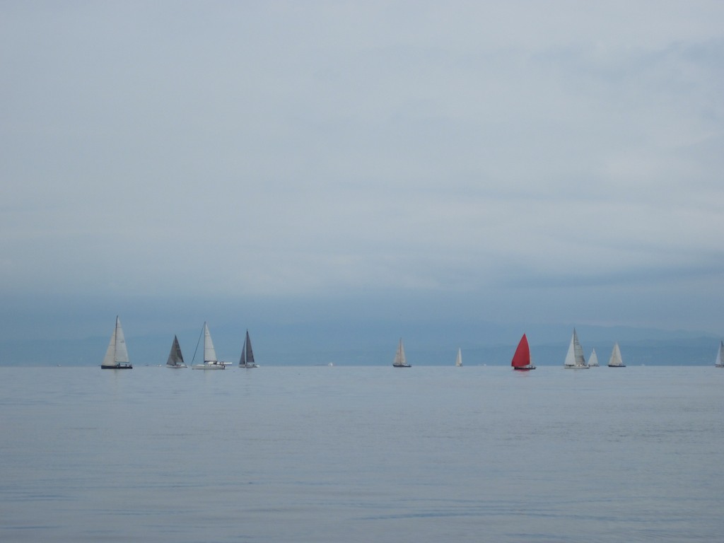 Heute ist ja Sonntag, Zeit für eine kleine Regatta? Natürlich starten sie gerade jetzt und wir müssen da irgendwie durch oder rundherum. Es ist nur ganz wenig Wind mehr, 2-3 Knoten und so umfahren wir sie im Slalom.