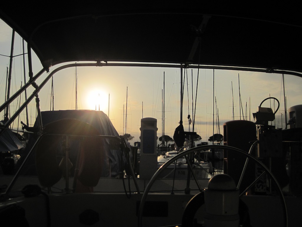 Als wir aus dem Fenster schauen ist es trüb und grau. Kein Wind und keine Sonne. Wir checken den Wetterbericht nach Regen und dabei fällt uns der Montag ins Auge. Schlecht mit viel Wind und vielleicht etwas Regen. Wir entschliessen uns spontan die Zelte abzubrechen und den Heimweg anzutreten. Schade, aber wir brauchen auf der letzten Etappe von Novigrad nach Piran und Portoroz keine Kapriolen mehr. Wir bezahlen die Nacht, die nicht mal viel ist, “nur” 54 € und legen ab. Schön war’s hier am Steg.