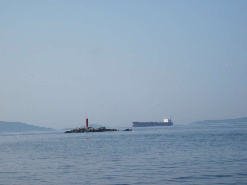 Wir laufen noch zweimal in die schöne Stadt Trogir. Verweilen auf dem Hauptplatz oder suchen nach der Arbeit, wir mussten ja noch ein paar Sachen umräumen und den längst überfälligen Motorfan einbauen, ein schönes Restaurant und geniessen die Spezialitäten. Dann heisst es aber Abschied nehmen. Wir wollen schnell zu den äusseren Inseln segeln, die wir noch nicht so gut kennen. Kaum sind wir draussen, stellt sich uns ein Grosser in den Weg.