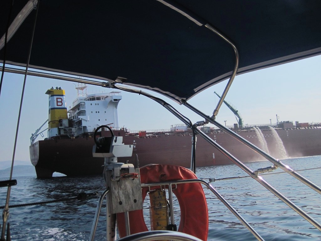 Bug oder Heck? Ich frage das AIS. Sea Training! Was? Er bewegt sich nicht und hat keinen Anker draussen. Hmm, ich gehe aufs Heck.