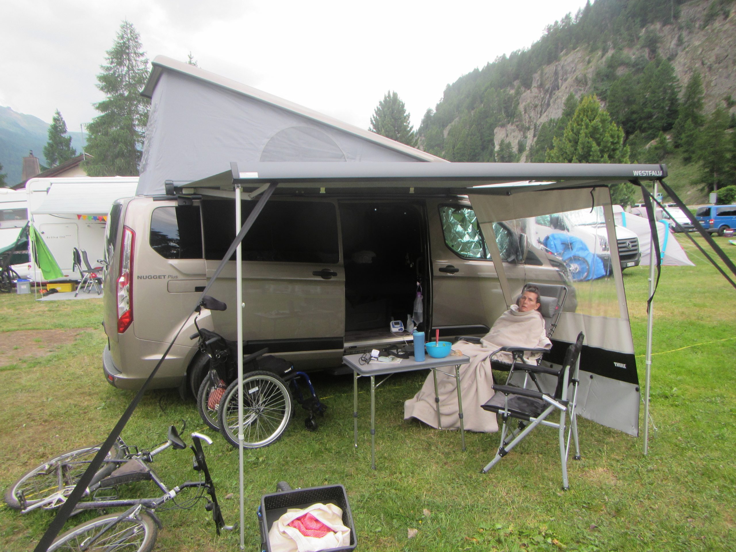Was machen wir den damit? So über Nacht ein neues Kind bekommen – wir sind überfordert. Stöbern im Netz nach möglichen Routen und vor allem, was brauchen wir noch an Ausrüstung. Da gibt es wirklich geniale Blogs, die so eine Liste sehr detailliert beschreiben. “Living in the Box” buchen wir auch gleich, denn die sind wirklich sehr gut und auch ihr Buch, dass wir von unserem Sohn ausgeliehen bekommen, überzeugt uns von Anfang an. Alles bestellen und abwarten, wie geliefert wird. Als nächstes wollen, sollten wir mal ein kurzes Schuelerreisli damit machen. Einen ersten Stop wollen wir in der Schweiz planen und zwar im schönen Engadin. Wir versuchen zu buchen! Versuchen ist das richtige Wort, denn es ist, natürlich, nichts frei. Mitten in den Sommerferien ein Platz zu suchen, nicht gut. Aber es hat einen Camping in Silvaplana, die keine Reservationen entgegennehmen und genau das brauchen wir. Dazu haben sie noch einen Stellplatz für Campers. Der Plan steht!