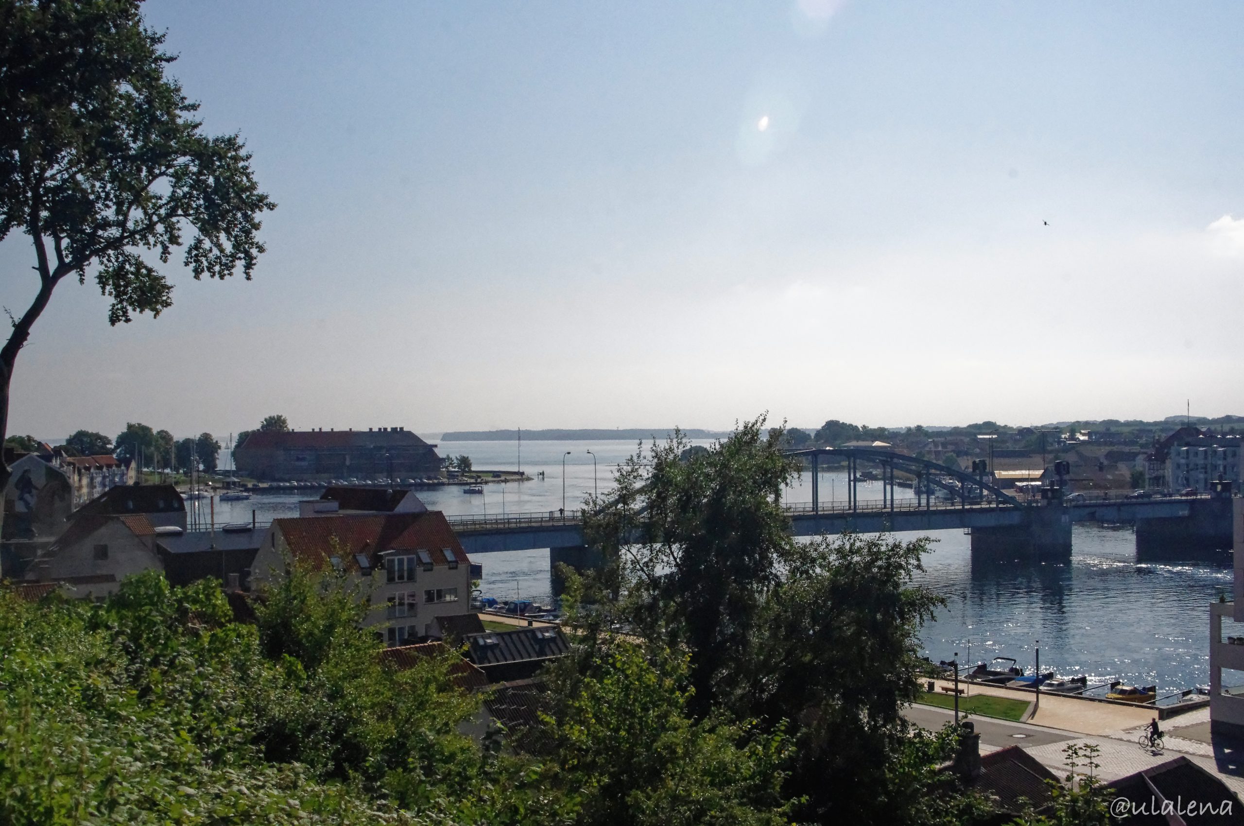 So viel Geschichte müssen wir erst mal verdauen. Schauen uns noch das Mühlenmuseum an und genehmigen uns einen verdienten Kafi. Beim Runterlaufen lassen wir uns von den Eindrücken der schönen Aussicht etwas verführen. Rema 1000? Was ist das für ein Laden? Lebensmittel. Brauchen wir auch noch. Die dänischen Produkte sind uns etwas fremd, finden aber trotzdem fast alles was wir noch brauchen. Bei der Bageri holen wir noch ein feines Brot. Über die mächtige Brücke zurück zur Insel Als.