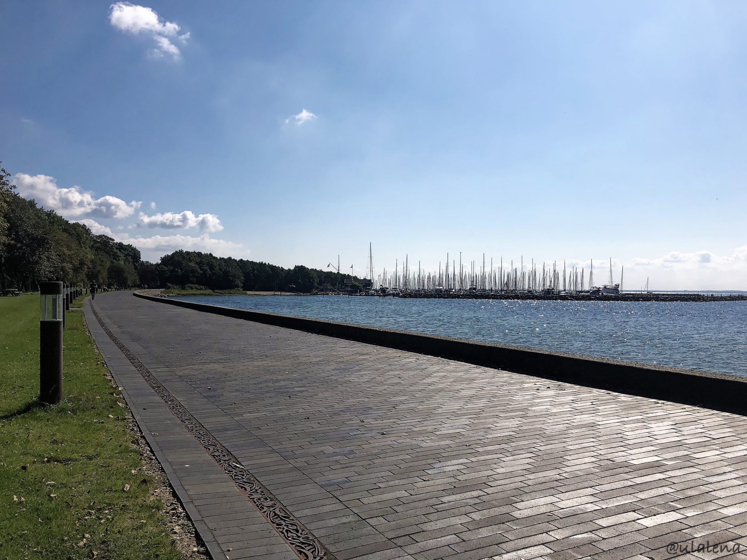 Zurück beim Camping bekommen wir einen guten Platz und merken, das hier niemand eine Maske trägt. Ich bin der einzige, der das Ding vor dem Gesicht hat. Fühlt sich komisch an, gefällt uns natürlich. Kurz alles aufstellen und einrichten, dann können wir los. Diesem traumhaften Weg entlang flanieren wir der Altstadt zu. Wir sind ganz aufgeregt und erblicken dann zum ersten Mal dem Hafen. Wow! Das hätten wir nicht erwartet.