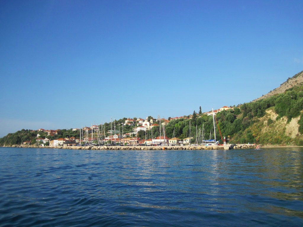 Ohne Wind Motoren wir um die schöne Insel Kalamos und erreichen den Hafen um Mittag. Die meisten Schiffe sind schon ausgelaufen und so sind wir fast alleine vor Anker. Schön. Endlich, so denken wir, sind die Flottillen und Charter-Fritzen verschwunden. Dem war aber nicht so. Im laufe des Nachmittags zählen wir sage und schreibe zehn Kat’s und zwei Flottillen im Hafen. Georges hat alle Hände voll zu tun und erst als es dunkel wird sind alle Boote versorgt. Nun ist der kleine Hafen brechend voll. Wir lassen uns in der Taverne verwöhnen, müssen aber einen Tisch hinter dem Windfang reservieren, draussen ist es uns einfach zu windig und zu kalt.