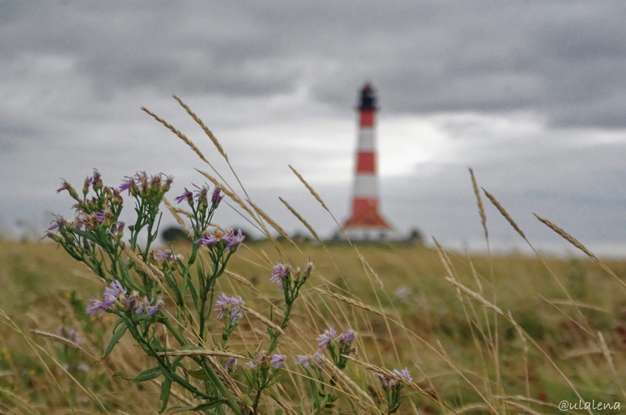 Zurück beim Van suchen wir den kürzesten Weg nach Tating. Aber da sehen wir noch einen Wegweiser zum Leuchtturm. Der Turm von Westerhever soll wirklich sehr berühmt sein. Also nix wie hin zum Westerheversand. Eigentlich ganz einfach, nur den Autos nach 😉 Schon von Weitem sehen wir dieses Prachtsbauwerk. Kurz in den Kiosk um für Gaby einen kleinen davon zu erstehen. Dann laufen wir dem berühmten Werbeträger entgegen. Alles geschlossen, aber er sieht schon sehr, sehr schmuck aus!