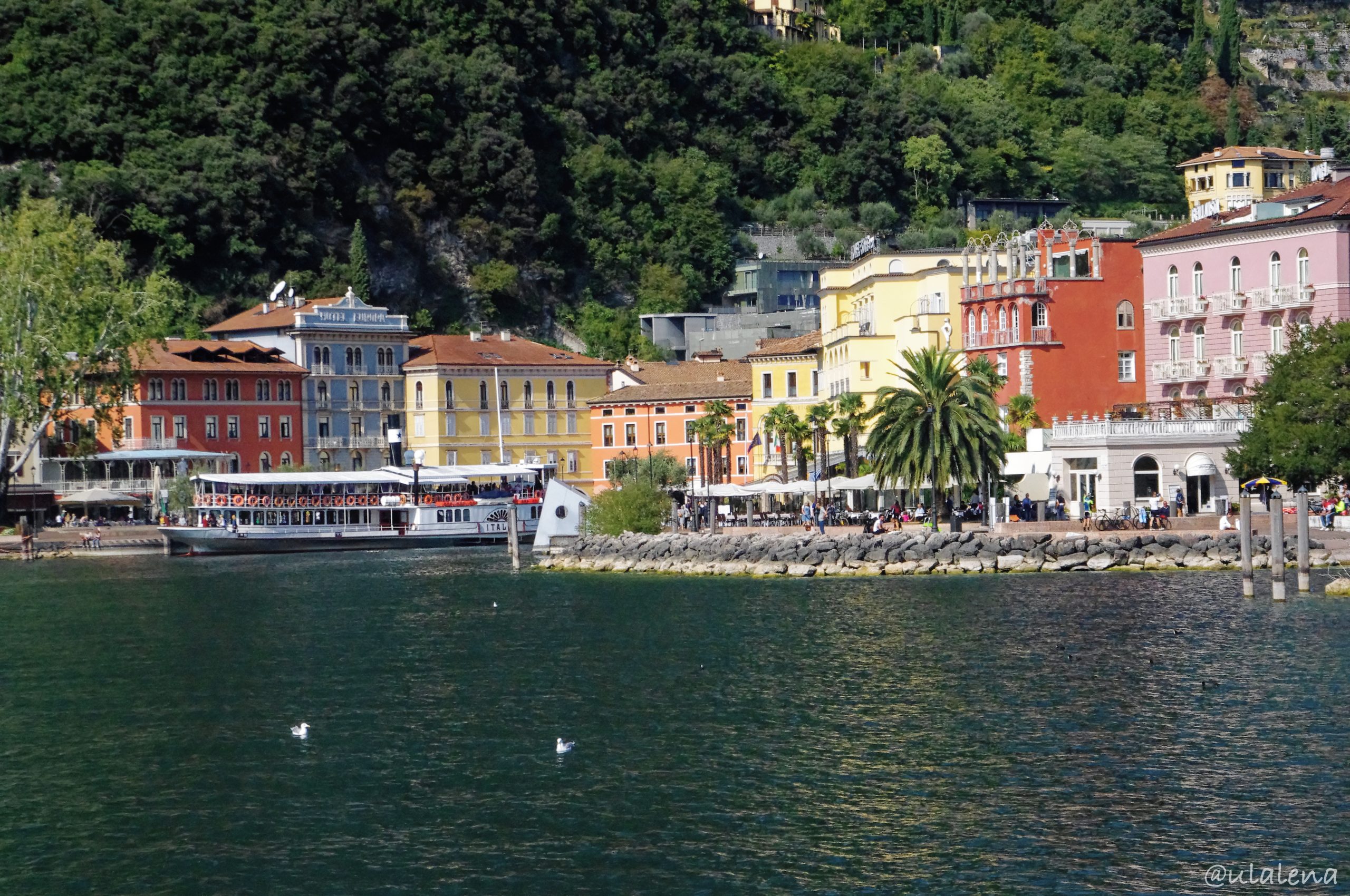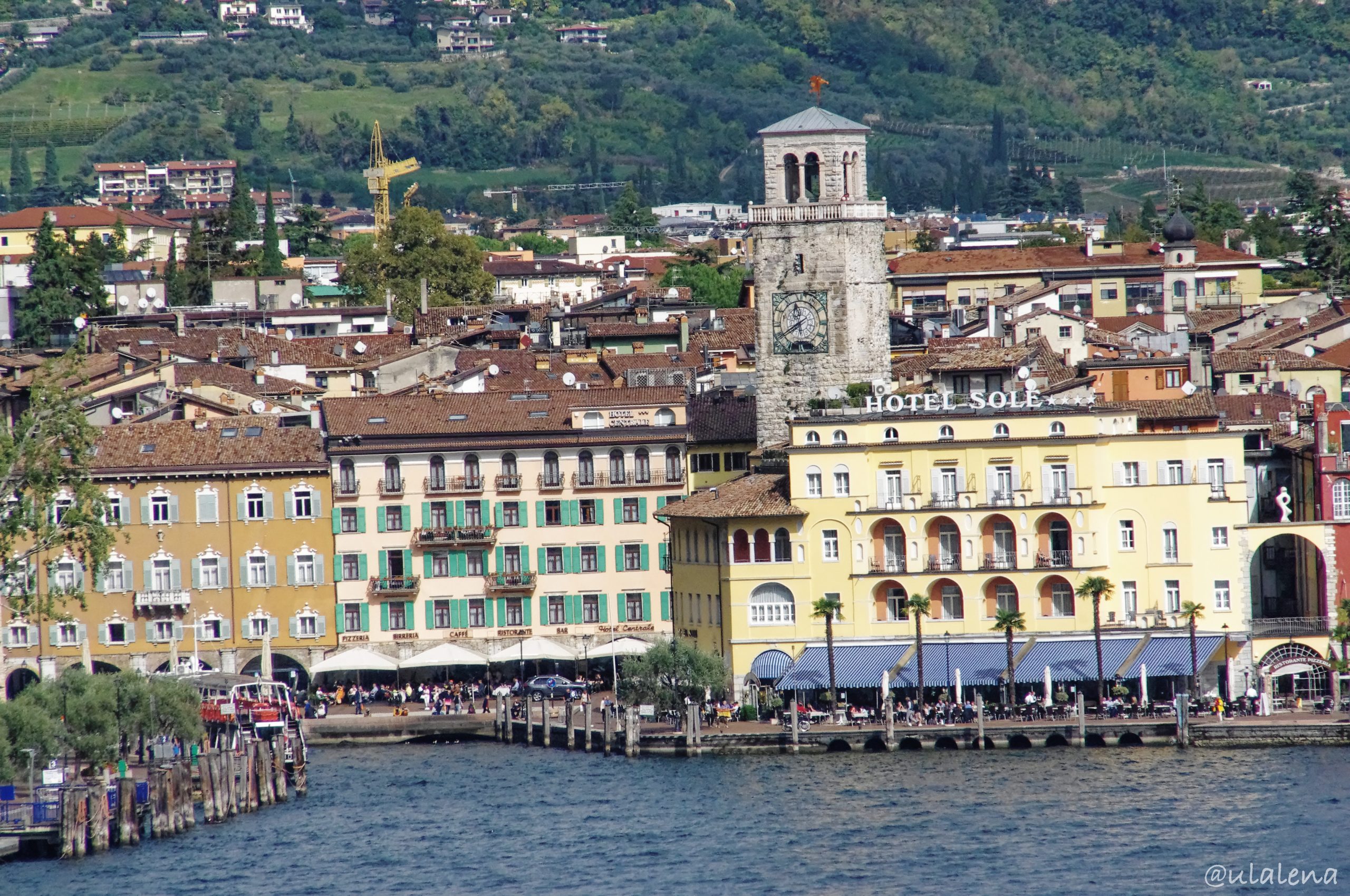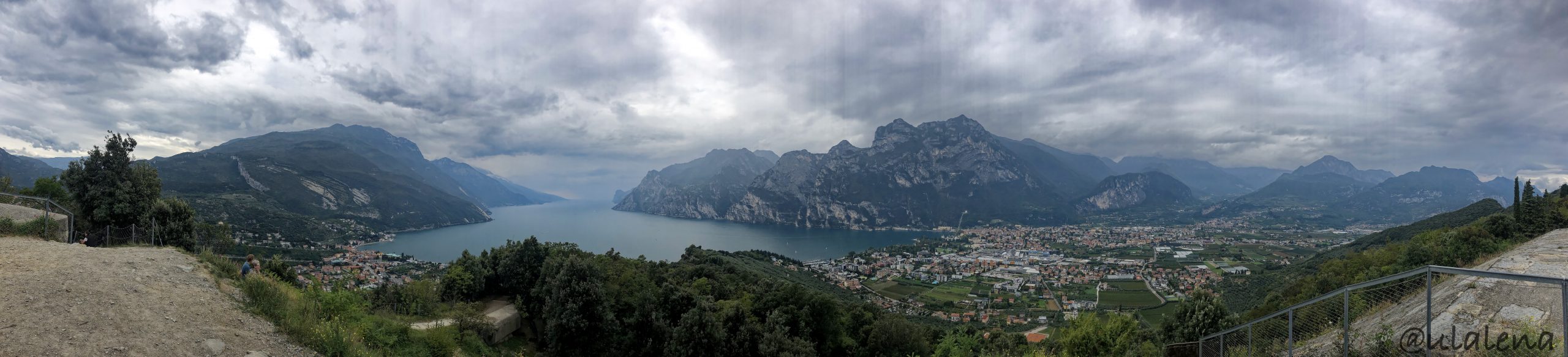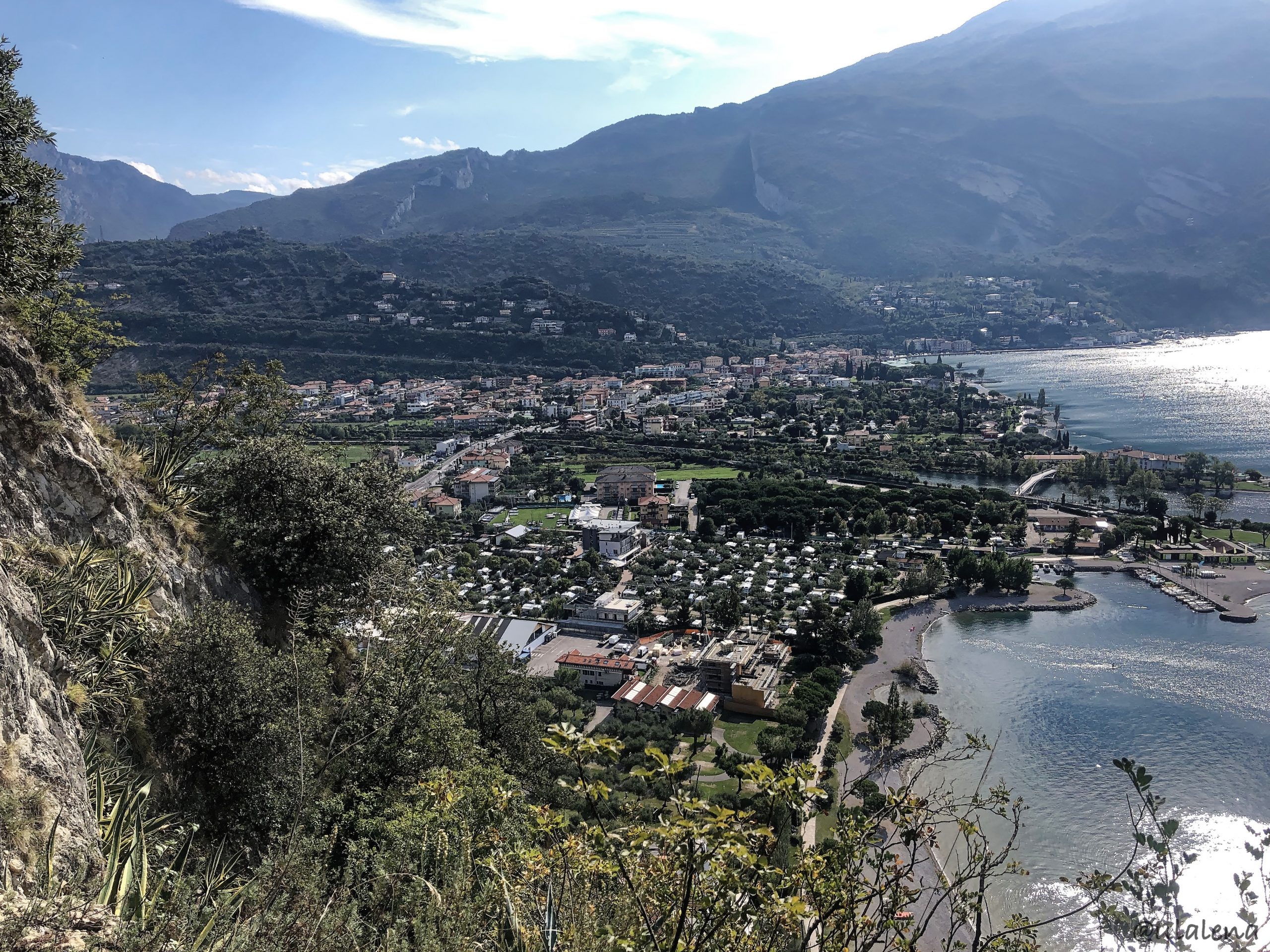 Mit einem Eier-Zmorge machen wir uns startklar. Trotz des leichten Regens, gehts trotzdem los. Laut Prognose soll das Wetter noch kommen, also die Sonne 😉 Diesmal in die andere Richtung. Das Dorf Torbole soll auch sehr schön sein und der Weg führt auch hier direkt am See entlang. Doch irgendwie bleibt es bewölkt und der Wind am Nachmittag trägt sein Teil dazu bei. Wir laufen bis zum anderen Segelhafen und schauen uns von Weitem die ganze schöne Stadt an.