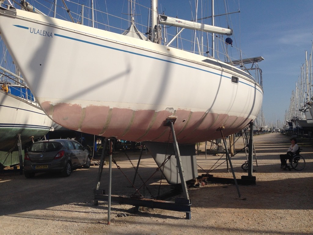 Das Wetter ist genial warm und auch die Sonne begrüsst uns. Um Mitternacht kriechen wir endlich ins Bett. In Preveza angekommen, wartet schon ein Taxi auf uns und fährt uns geradewegs zur Ulalena. Sie haben sie umgestellt, aber der Nachtportier zeigt uns den Platz. Danke und nur kurz aufschliessen, Kran anhängen und Gaby raufziehen. Hmm. Leider ist der Baum noch zu niedrig und Gaby muss Heute unter der Reling durch. Da ist auch noch die Winch! Schon wieder ein blauer Flecken.