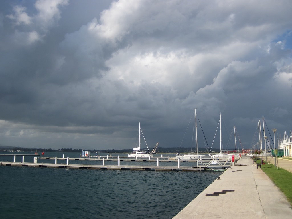 Dann ein Gewitter, Front, Wind Alarm. Es soll mächtig windig werden. Wir verschanzen uns im Boot, wollen aber doch noch kurz einen Kaffee genehmigen. Wow, da kommt es aber mächtig dick!