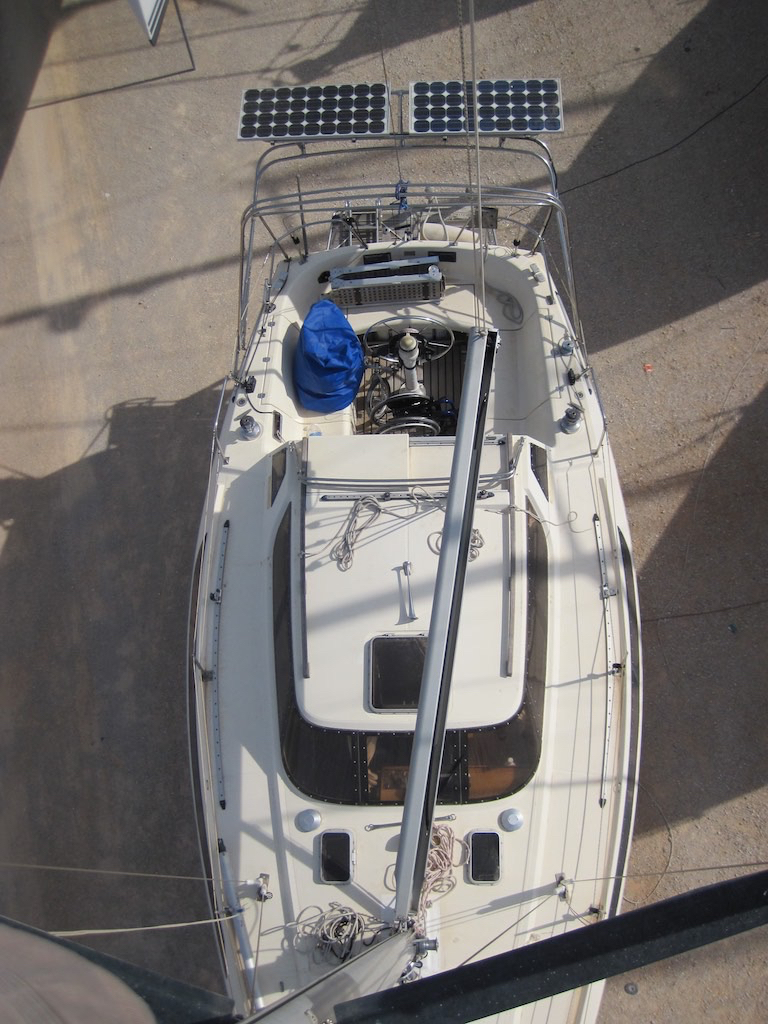 Die Liste für die Ulalena ist aber immer noch nicht fertig und es hat noch viele Punkte zu erledigen. Heute muss, darf ich auf den Mast. Das Dampferlicht gibt einen Alarm von sich. Alles montieren, sichern und anhängen und schon “fliege” ich dem Mast empor. Die Aussicht – wo sind den die Bäume vor lauter Wald?
