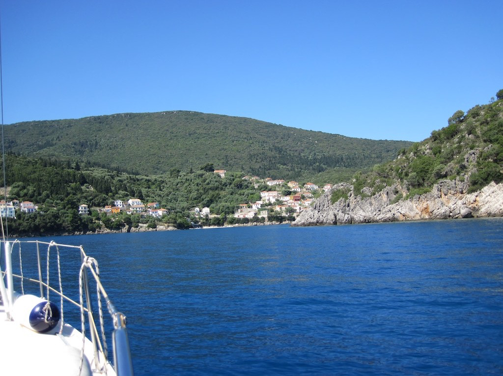 Die Bucht hier von Nidri ist zwar schön und auch ruhig, aber es zieht uns in den Süden. Ein neues Dorf, ein neuer Hafen. Kioni ist auf dem Plan. Hat es wirklich Platz für uns? Halb acht und der Anker kommt schon hoch, kurz putzen und schon ist der neue Kurs 180° angelegt.