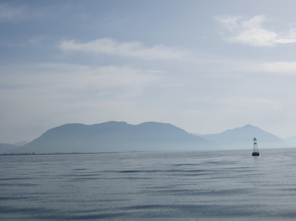 Der Autopilot läuft nicht schlecht, schon fast gerade gurken wir in Richtung Brücke. Ja die Brücken von Rion wollen wir Heute wieder einmal “bekämpfen”. Bis jetzt hatten wir immer Wind und Strömung gegen uns. Heute muss es umgekehrt passen. Punkt zwölf Uhr sind wir da.