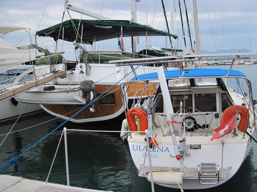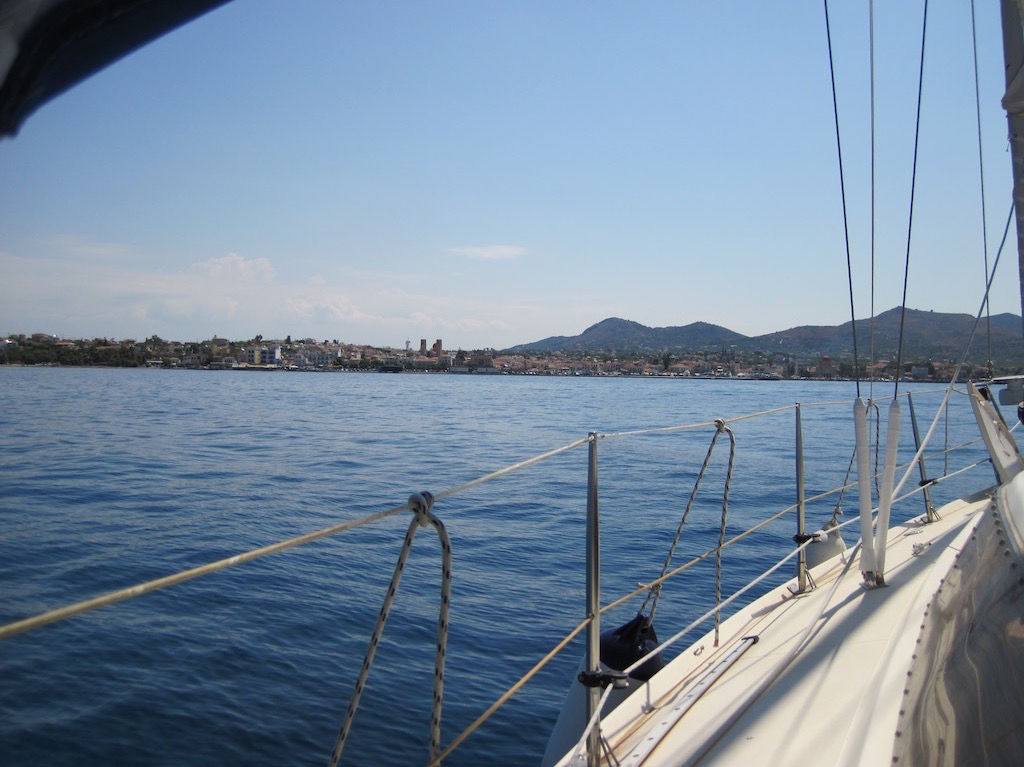 Ankersalat? Ja fast, nur mit viel Glück entkommen wir dem Heute Morgen. Beim Anker heben bemerke ich plötzlich einen Ruck. Hmm, das Wasser ist so klar, das ich die misere sofort erkenne. Der Nachbar hat zwei doppelte Stockanker geworfen und wir haben einen davon aufgegabelt. Zurückfahren, einen Bogen und auf der anderen Seite wieder raus. Hüpfe wieder nach vorn und siehe da, wir sind frei. Uff. So sind wir die paar Meilen unterwegs zur Pistazien-Insel Aegina. Kein Wind, aber viel Verkehr auf dem Wasser. Dann alles bereit machen zum Anlegen.