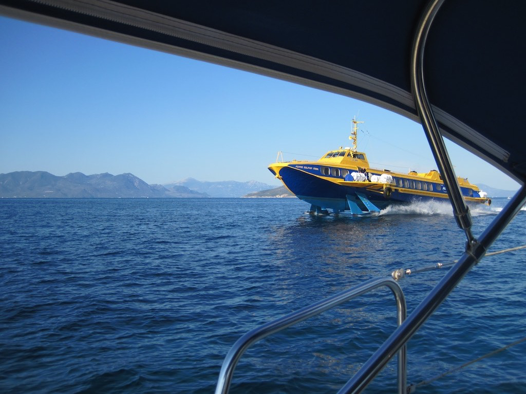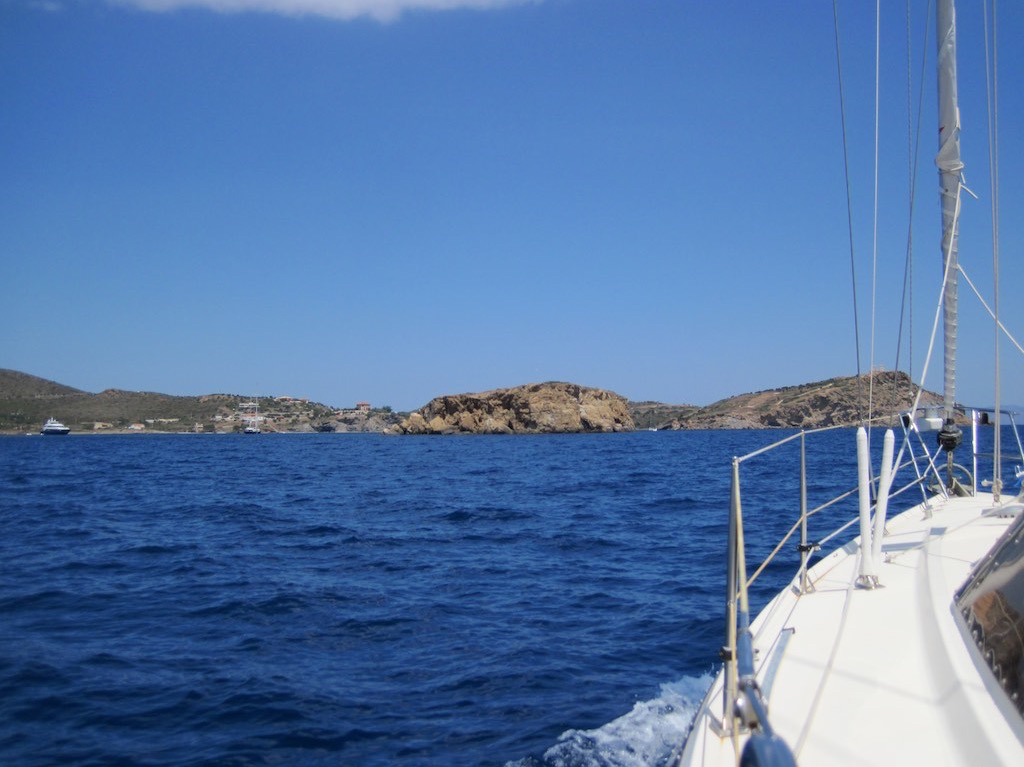 Nach zwei Tagen an der lärmigen Strasse von Aegina, legen wir ab. Eine schöne Stadt mit lässigen kleinen Gassen, aber auf die Dauer ist das Ganze schon etwas nervig. Über den Norden der Insel wollen wir das Kap Sounion und dem Tempel des Poseidon von nahem sehen. AIS und Navigation an und es sind eigentlich keine grösseren Pötte im Anflug.