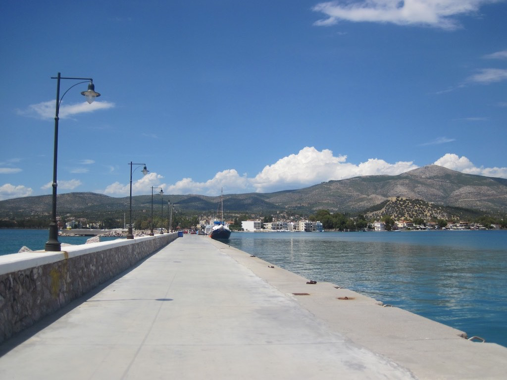 Heute verlassen wir den Glaceort und tuckern ganze acht Meilen zur Insel Evia zurück. Eretria soll sehenswert sein und liegt auf dem Weg nach Chalkida. Ein paar Untiefen und Inseln liegen verstreut vor der Hafeneinfahrt. Ist aber bei dem jetzigem Wetter kein Problem. An der laaaaaangen Aussenmole legen wir gleich hinter einem Fischer an. Unser Nachbar sagt nur, wie in Abrahams Schoss!