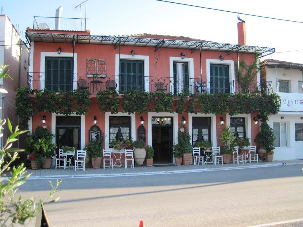 Rückwärts fahren wir dann an den leeren Platz an der Mole. Passt! Kaum angelegt kommt schon der Hafenmeister. Wir sollten schnell aufs Büro kommen, er müsse weg nach Chalkida. Das Mittagessen ist aber an der Reihe, er lässt aber keine Ruhe und schlussendlich müssen die beiden neuen Boote mit ihm und seinem Auto auf den Posten. Ein paar Euros abladen und schon sitze ich wieder am Mittagstisch. Vor dem Nachtessen wollen wir die schöne Aussicht über den Hafen geniessen und so lotsen wir die “Neuen” zur Kapelle hinauf. Schlussendlich sind alle begeistert und geniessen die Super Sicht über die Stadt.