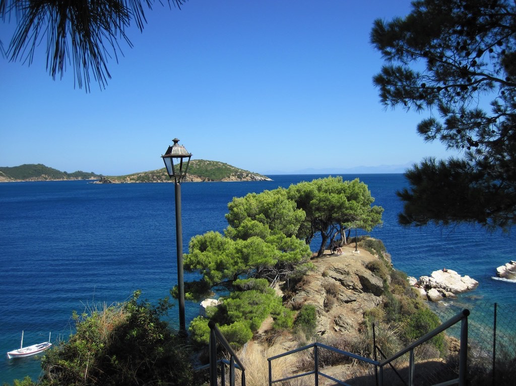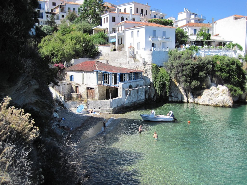 Ja, das war wirklich ein schöner Ort. Etwas zu viel Trubel, aber das ist halt, wenn man mitten in der Saison an solche Ort geht. Langsam müssen wir an den Heimweg denken. Es ist schon Mittwoch und am Freitag Abend geht schon der Flieger. Im Westen von Skopelos hat es noch eine ganz nette Bucht. Schwarzwald-Bucht wir sie auch genannt. Da müssen wir fast hin. Auf gehts, bye Steni Vala.