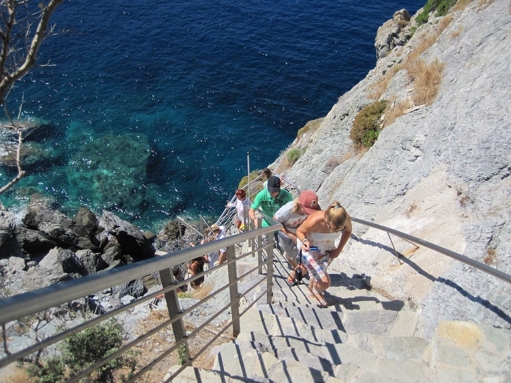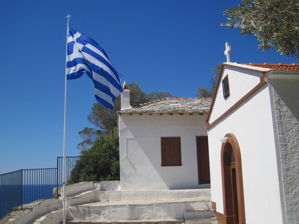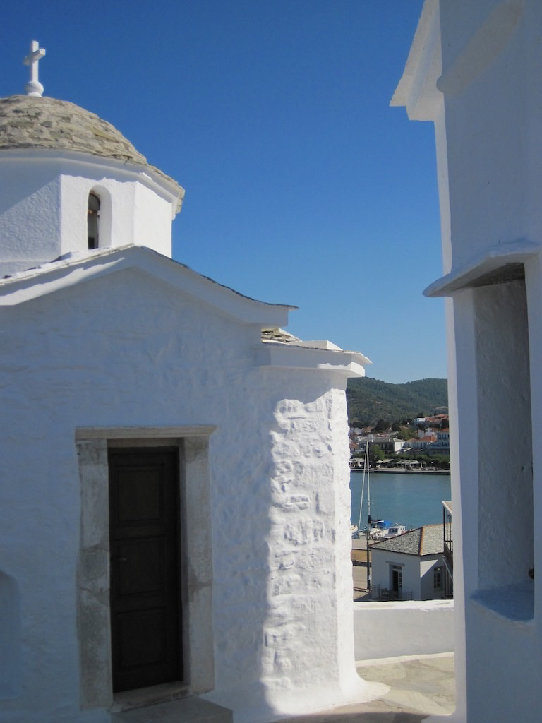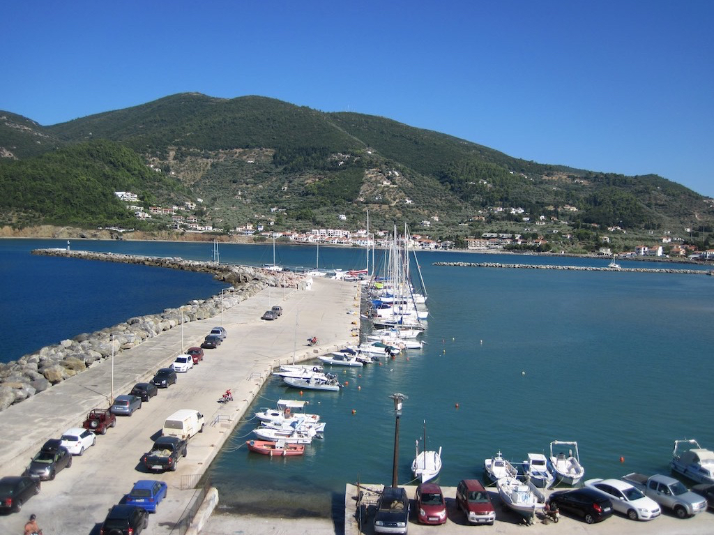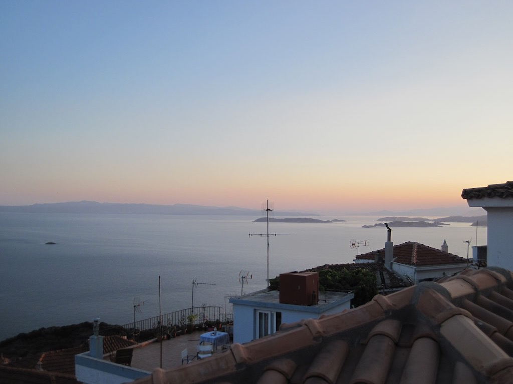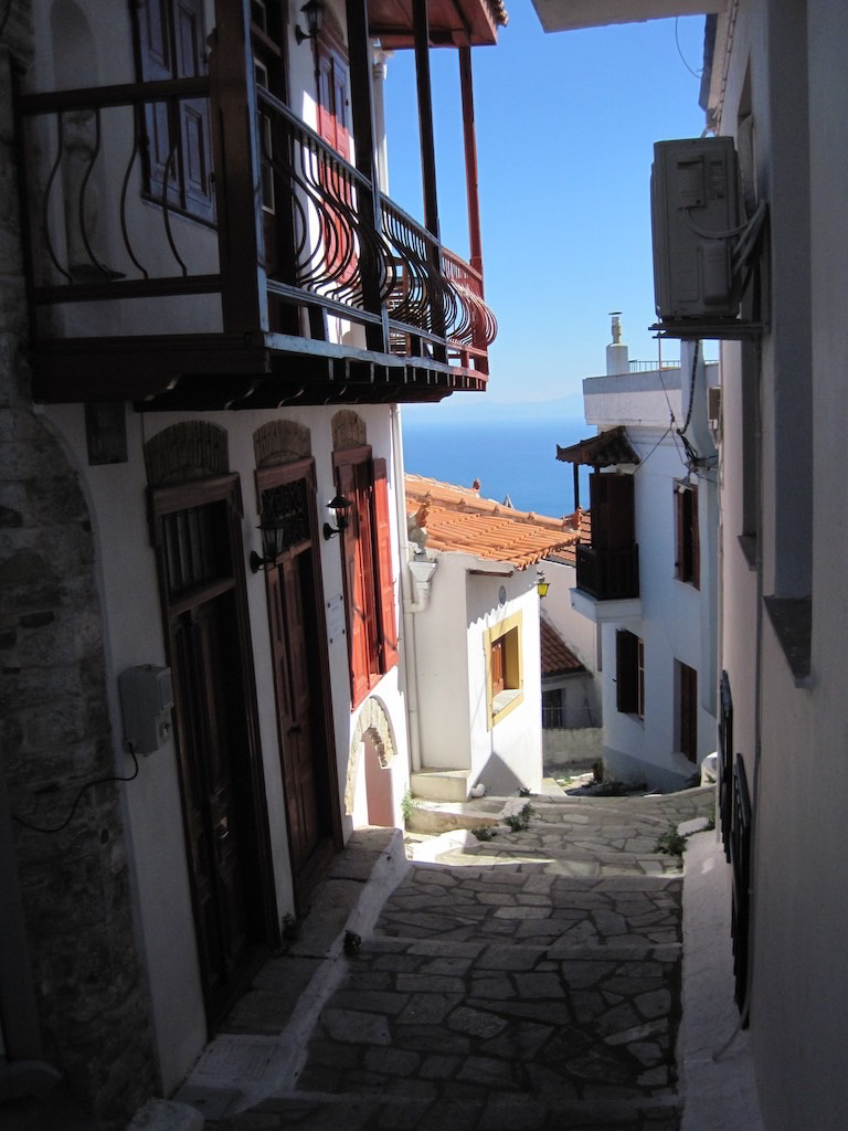 Alles bereit. Aufbruch nach Glossa. Etwa drei Kilometer bis hinauf zum schönen Dorf. Der erste Halt, schön.
