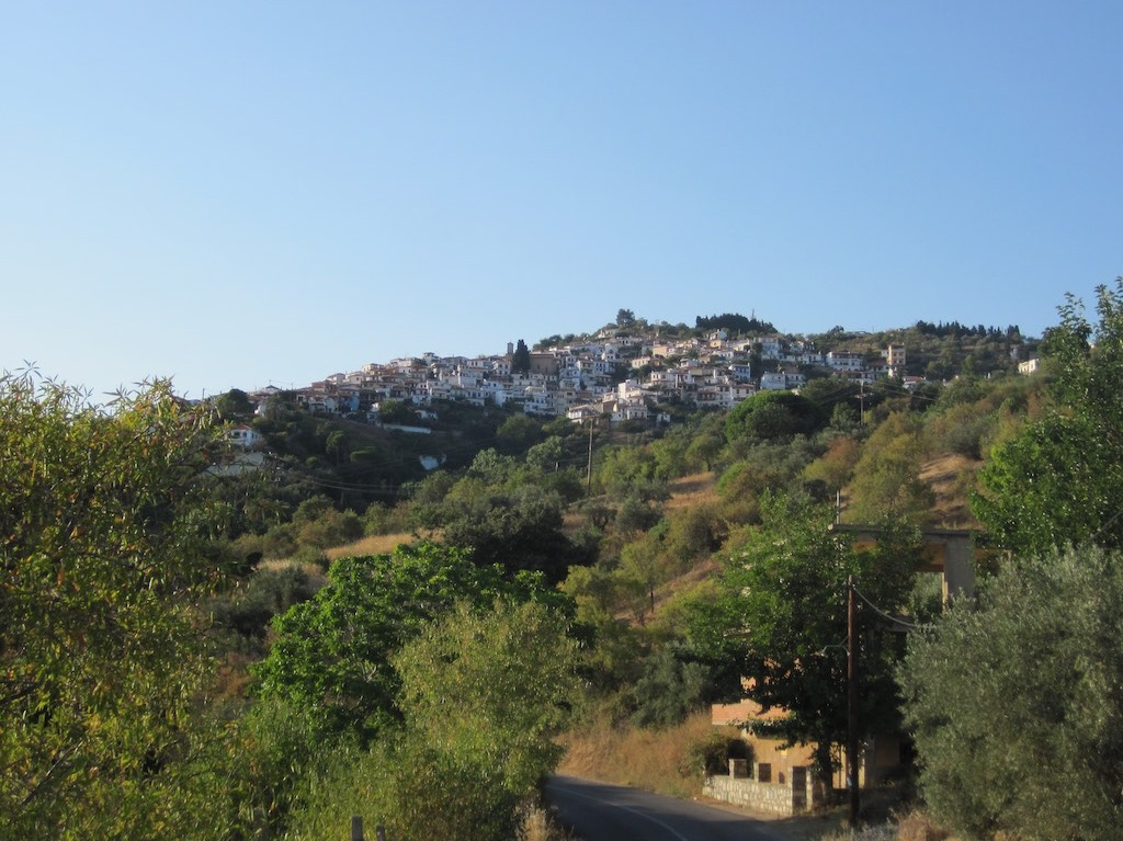 Wir geniessen die Aussicht und bringen Gaby die Fotos runter. Schön gell! Dann fährt uns das Taxi zurück zur Stadt Glossa und über die Bergstrasse laufen wir wieder zum Dorfplatz.