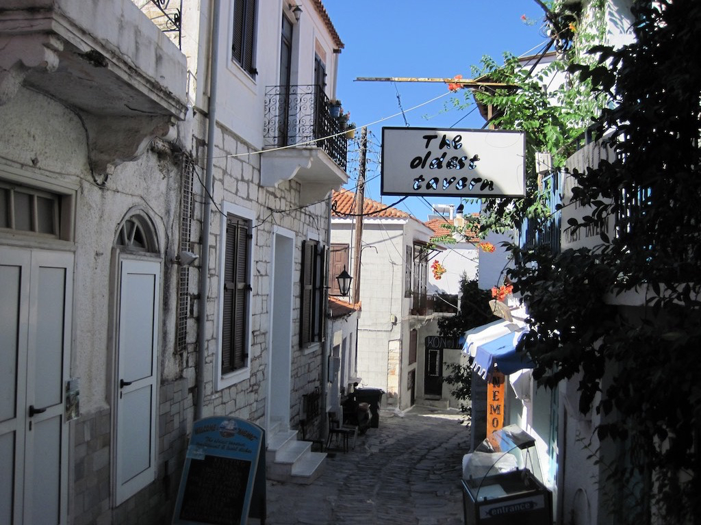 Hier oben kann man nur Apéro haben, Essen ist auf dem Platz unten vorgesehen. Wir setzten uns hin und bestellen uns Stifado, Beef und Octopus! Marco lernt was ganz Neues kennen und liebt es sogar! Mit etwas zu viel Essen und Trinken im Bauch, ist der Abstieg zur Ulalena gerade richtig. So rollen wir den Berg hinunter. Tolle Stadt. Morgen kommen wir wieder. Das währe genau meine Beiz für Morgen, sagt Gaby.