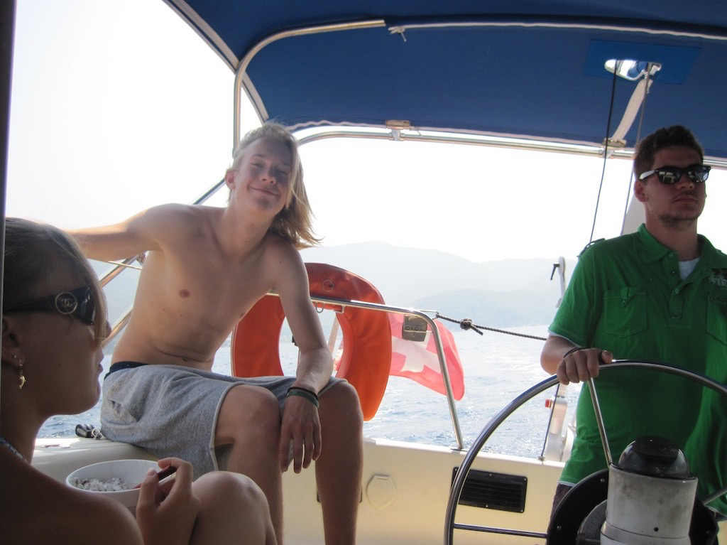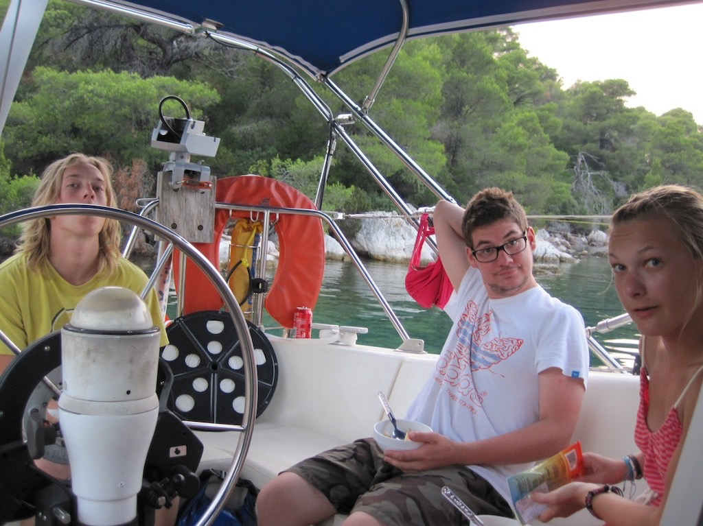 Freitag, Zeit um nach Skiathos zu segeln. Der Wind sollte wieder stimmen, aber zuerst sollten wir noch den Check-In für die Kids machen. Eins, zwei und die Boardingkarten sind auf den Telefons. Ab geht’s, raus in den Wind.