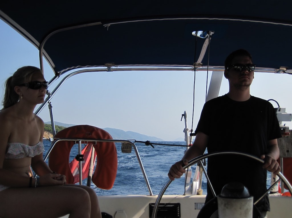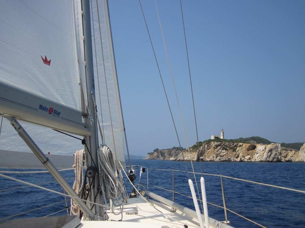 Der Wind ist einfach genial. Schön von Norden und auch nicht zu stark. Marco ist in seinem Element und steuert die Ulalena rund ums Südkap von Alonissos und Skopelos.