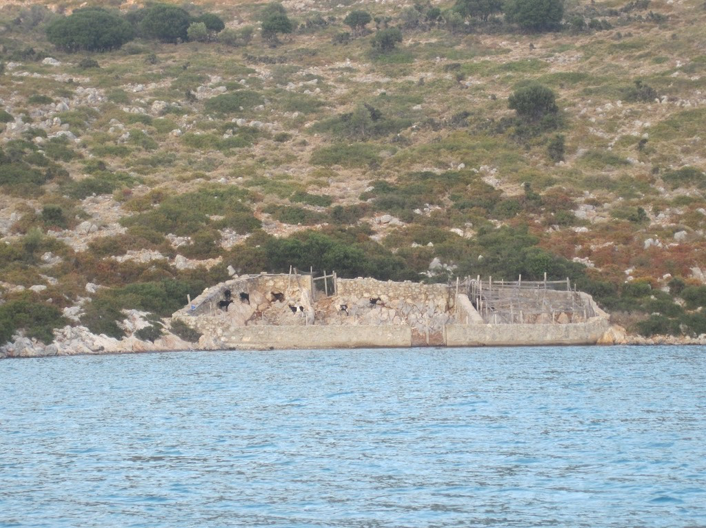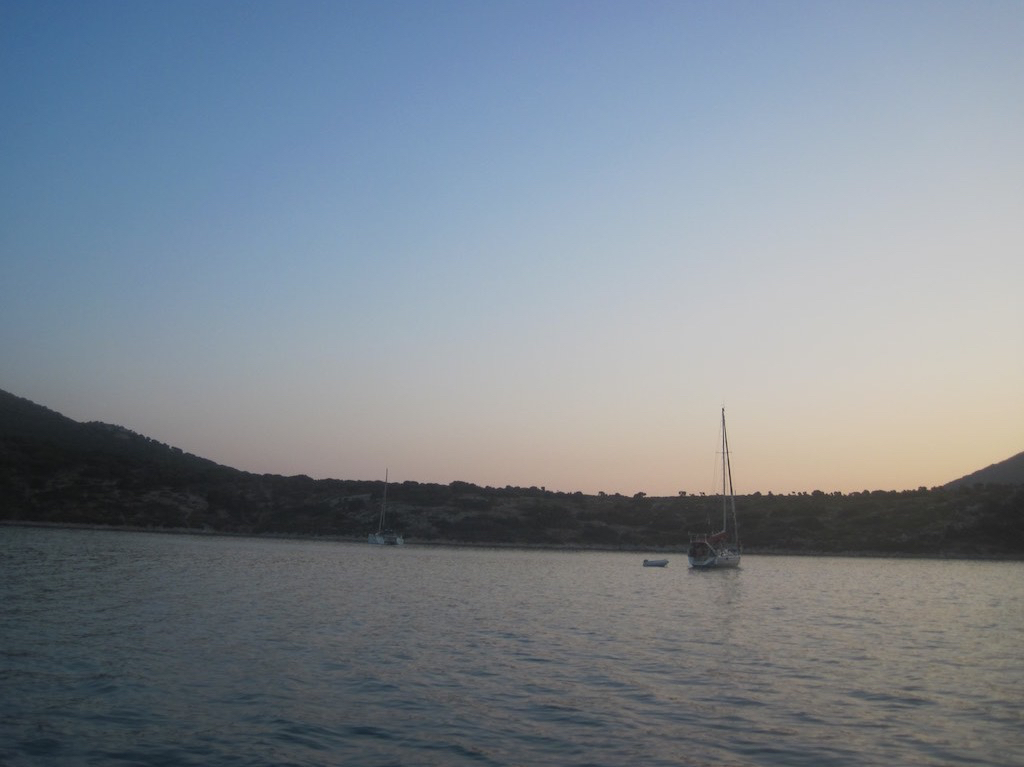 Endlich! Mit Rückenwind werden wir regelrecht in die grosse, hoffentlich geschützte Bucht gespült. Wellen weg und auch der Wind ist nun sehr gemächlich. Wow, dass hätten wir hier oben aber sicher nicht erwartet. Kaum was los und so lassen wir den Anker bei sieben Meter in der Plantitis Bucht auf der Insel Pelagonisi runter rauschen.