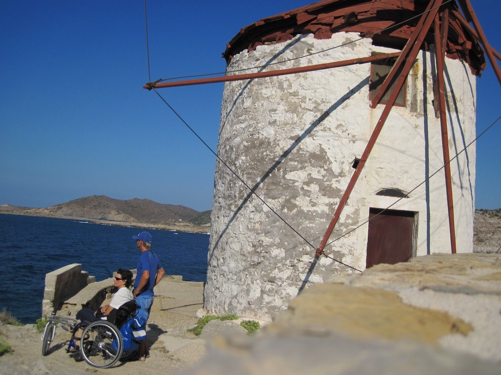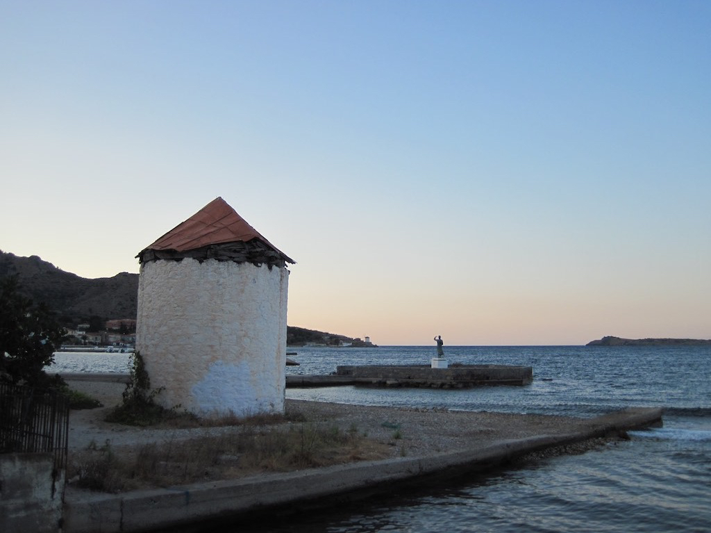 Aber schon ein paar Stunden später kommt der Nächste und hängt sich an den Anker und mit dem Heck an die Mole. Als wir zu Bett wollen kommt noch einer. Ich renne im Pischi raus und helfe ihm beim Anlegen. Er kommt von Molyvos, Wahnsinn! Wir aber machen uns für den Landgang bereit. Die Mühle erkunden wir zuerst. Die Aussicht nach Norden, fantastisch.