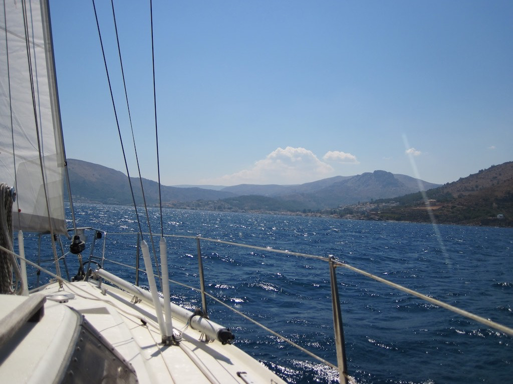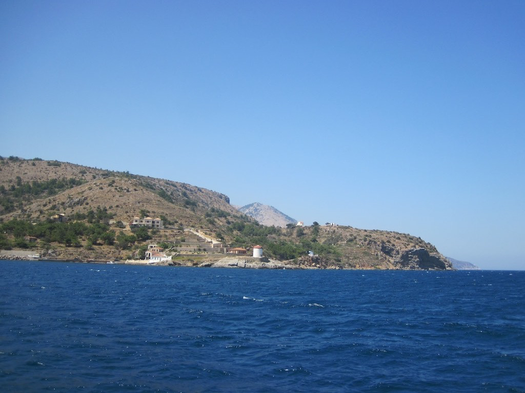 Fast gleichzeitig machen wir mit unserem Nachbar an der Mole in Plomari los. Er versucht es mit etwas Segel, wir geben von Anfang an auf. Null Wind oder etwas auf die Nase. Gespannt sind wir auf den neu eingestellten Autopilot. Und? Immer noch das gleiche, er hat einfach keine Ahnung wo Norden ist. Dann halt ein andermal. Er fährt seine Kurven und am Schluss landen wir doch am Richtigen Ort.