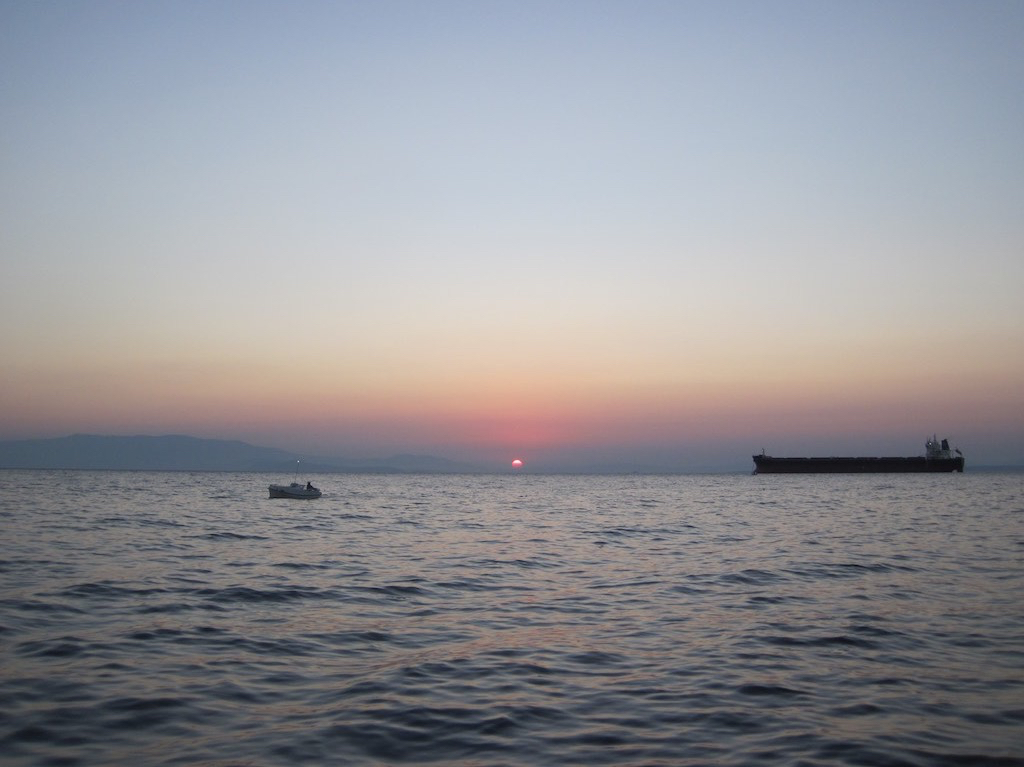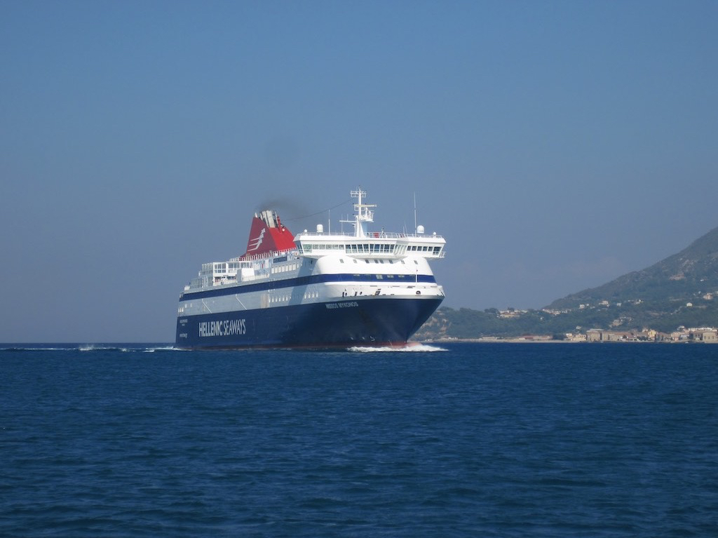 Zwischen dem Leuchtturm Suenguekaya und der kleinen türkischen Insel Bogaz haben wir ganz guten Wind und mit vollen Segel geht’s in Richtung Süden. Herrlich, so am frühen Morgen durch die Gegend zu segeln. Dann stellt der Wind aber immer mehr ab und mit Motor fahren wir weiter. Fünfzehn Meilen vor Samos kommt dann endlich genügend Wind von Westen, dass wir den Motor wieder abstellen können. Feines segeln bis in den Hafen. Aber da kommt auch noch eine Fähre zu uns. Wer ist schneller? Warten oder rein, ist wie immer die Frage? Segel runter und rein in den grossen Hafen. Da biegt sie schon ums Eck.