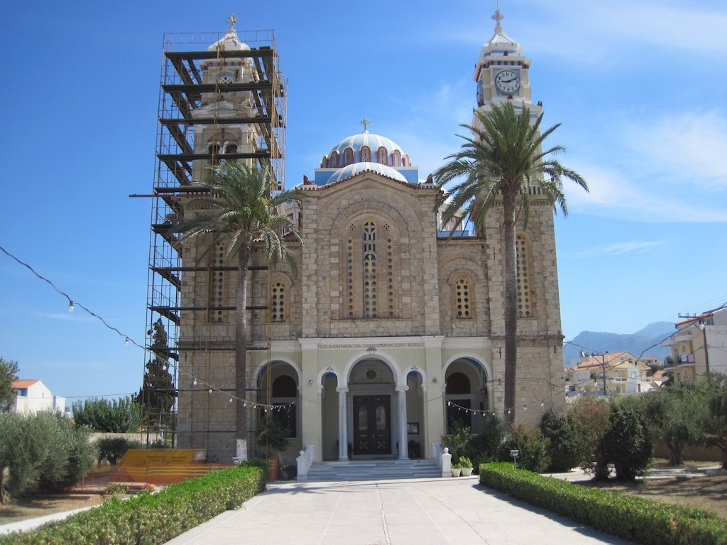 Was macht das Wetter? Wir haben echt Südwind erwischt. Hmm. Wollen wir in den Süden der Insel und somit Samos im Westen umrunden, ist der Süder nicht so “gäbig”. Was ist den am Mittwoch? Da ist es still und durch das Nadelöhr von Samos und Ikaria kein Problem. Somit bleiben wir noch einen Tag und können der Stadt einen Besuch abstatten. Am Strand entlang nach Osten und rechts abbiegen. Wir werden wieder einmal überrascht. Ganz, ganz netter Dorfplatz mit haufenweisen Geschäften. Auch die Kirche ist schön.