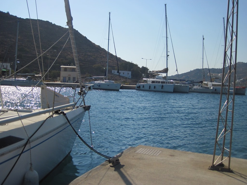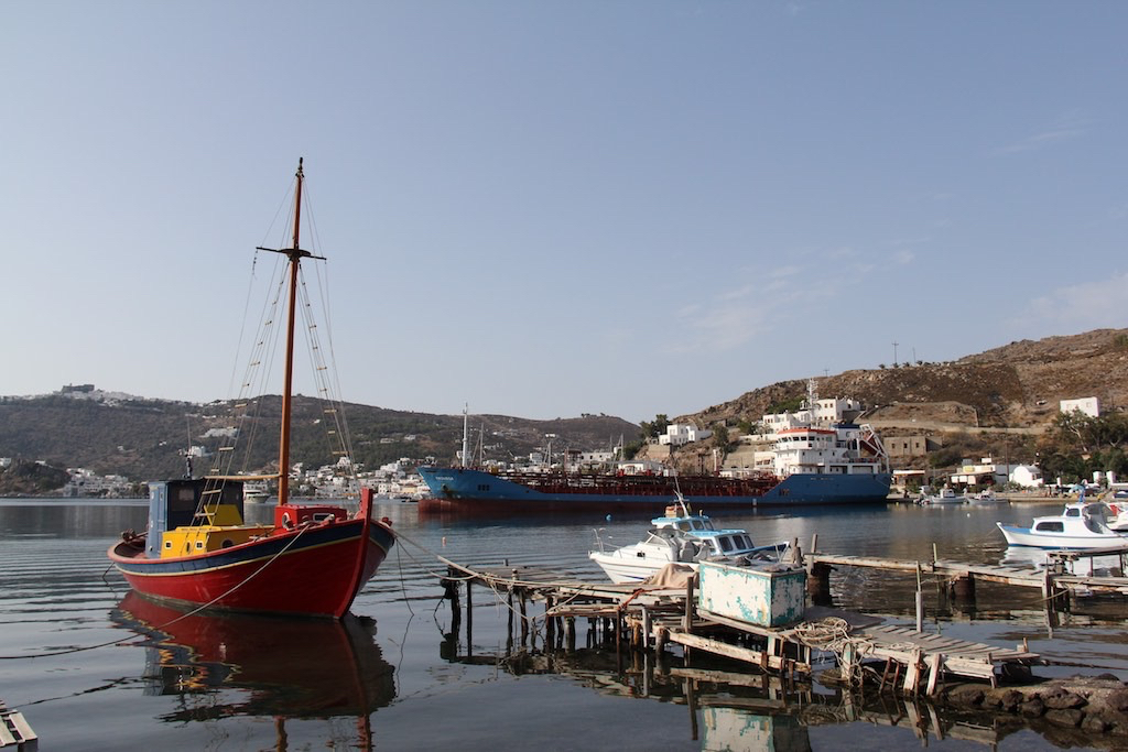 Wir kommen Skala, dem Haupthafen von Patmos immer näher und merken sehr schnell, er ist pumpen voll! Heute morgen waren wir fast alleine und jetzt voll. Das gibt es doch nicht. Den Grund finden erfahren wir erst später, die Türkei hat einen hohen Feiertag (Opferfest) und somit chartern viele ein Boot und segeln ins schöne Patmos. Wir finden aber trotzdem einen Super Platz im Hafen. Anker runter und am Kopf legen wir uns an den Steg.