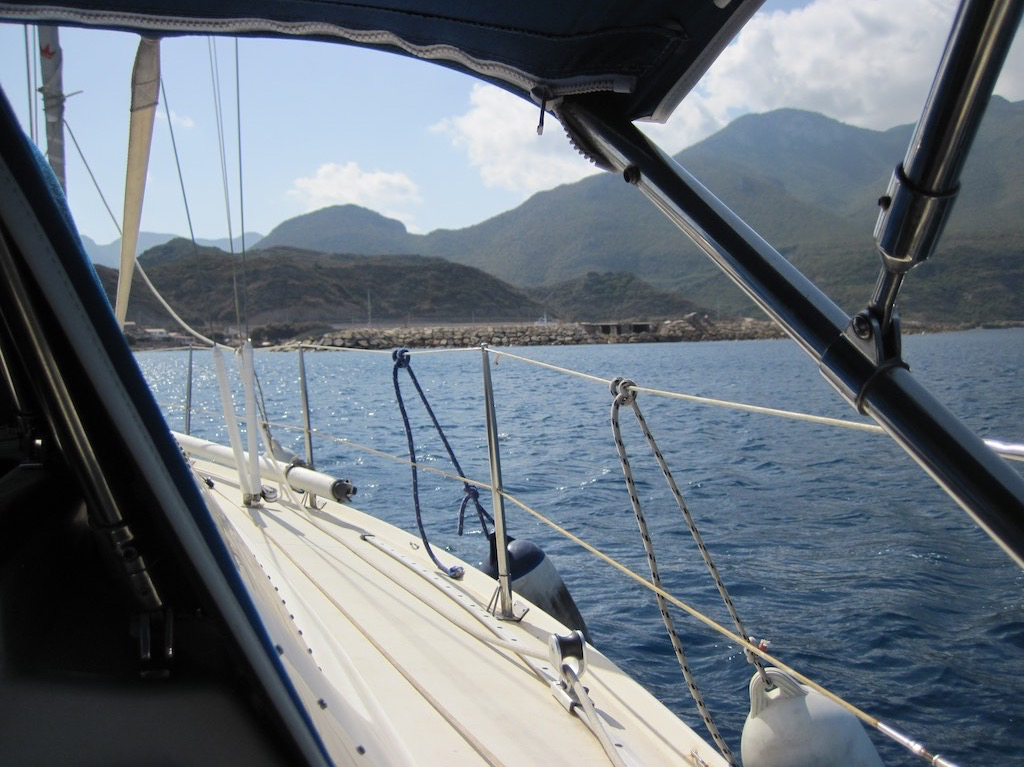 Mal mehr mal weniger Wind von Hinten, schiebt er uns ums Kap Ince Burnu. Segel runter und alle Fender, Leinen raus. Brauchen wir den Anker? Laut Hafenführer schon. Schalter beim Steuerrand anschliessen und Anker bereit machen. Der Schutzhafen Körmen kann kommen.