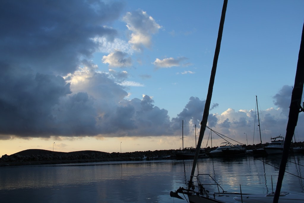 Was macht eigentlich das Wetter? Eine Front sollte schon lange kommen. Tut sie aber nicht. Oder doch, Morgen soll’s so weit sein. Regen! Regen, was ist das schon wieder? Auf jeden Fall bleiben wir noch eine Nacht. Tatsächlich, um sieben Uhr kriegen wir ein paar Tropfen ab. Nicht einmal das Boot wurde nass, geschweige denn sauber.