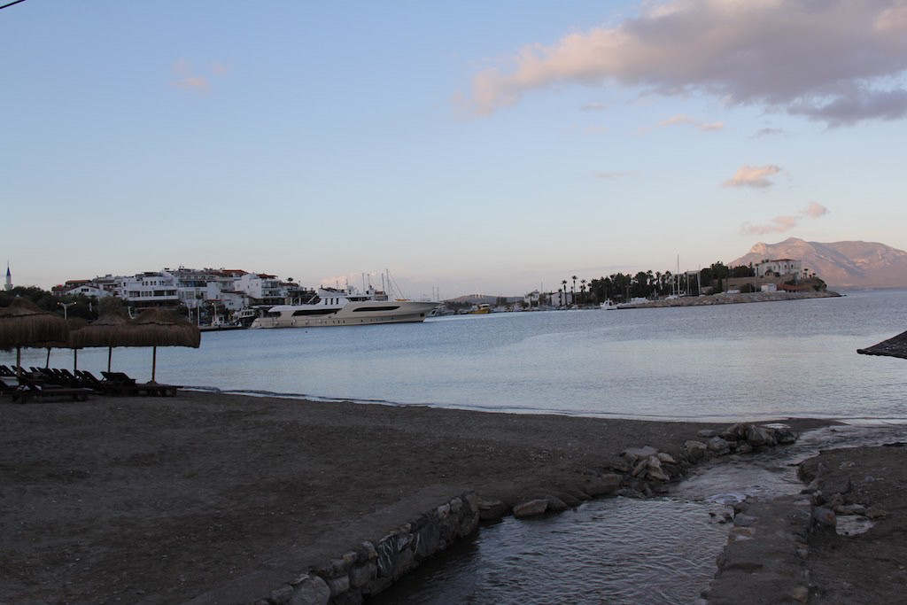 Der Hafen ist wirklich nett. Auch am Nordufer lässt es sich aushalten. Schöne Läden und vor allem Beizen tummeln sich am Ufer. Wir setzen uns in ein Kaffee oder besser, Teestube und bestellen einen Cay (tschai). Fein, mit einem Zucker, super gut. Es ist ein spezieller Schwarztee und schmeckt uns sehr gut. Für ein paar türkische Lira geniessen wir es zum erstmal in einem “Einheimischespunte”. Verstehen? Verstehen tun wir rein gar nichts. Merhaba, ist gerade das einzige, was wir aus den Gesprächen mitbekommen. Was Hallo heisst! Wir suchen noch einen SuperMarket und als wir einpacken und ich auf den Sack sehe. Migros! Was, das gibt es hier auch? Wir staunen nicht schlecht. Zurück beim Boot machen wir eine kurze Pause. Vor dem Znacht wollen wir aber noch kurz zum Wasserfall. Der soll gerade neben dem Hafen sein. Von einem Süsswasserteich fliesst das Wasser ins Meer. Super hoch!