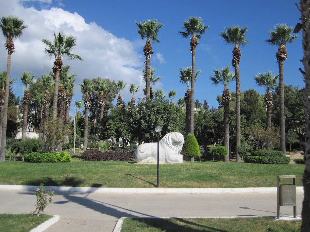 Wir machen uns auf den Weg, die Stadt oder das Dorf zu erkunden. Einen Park haben wir schon von weiten gesichtet. Der Löwe gefällt uns am besten.