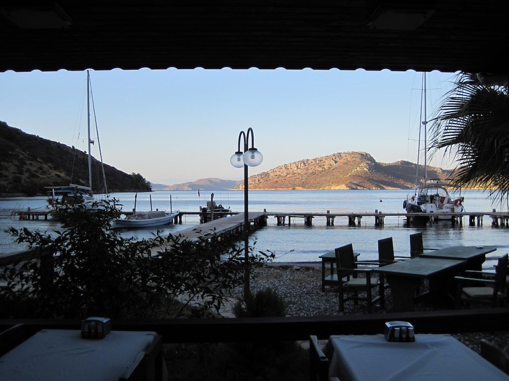 Fast wie zu Hause. Diese Gelassenheit, der Wahn. Der Kellner, Schwiegersohn, bring uns den Cay und geht gleich wieder Fischen. Kleines Missgeschick, er wirft statt nur den Köder, den ganzen Silk mit Aufrolldings raus. Blöd. Wir würden fluchen – er nimmt sein Dingi, holt die Leine und fischt weiter. Ja, hier sind wir definitiv am richtigen Ort. Der Znacht wird dann fast etwas viel. Die tischen auf wie für eine ganze Armee. Für uns, viel zu viel, aber mega fein. Als wir zahlen wollen, nichts, da wir zuerst ein Raki und ein Tee getrunken. Kein normaler Tee bekommt Gaby, es ist so ein Kraut und mit nur einem Zweig ist der Tee fertig. Auch der Koch kommt damit an der Tischt, nimmt seine Klarinette hervor und beginnt zu spielen. Es wird spät, bis sie uns endlich “gehen” lassen. Sehr, sehr heimeliger Ort. Da kommen wir sicher noch eimal hin.
