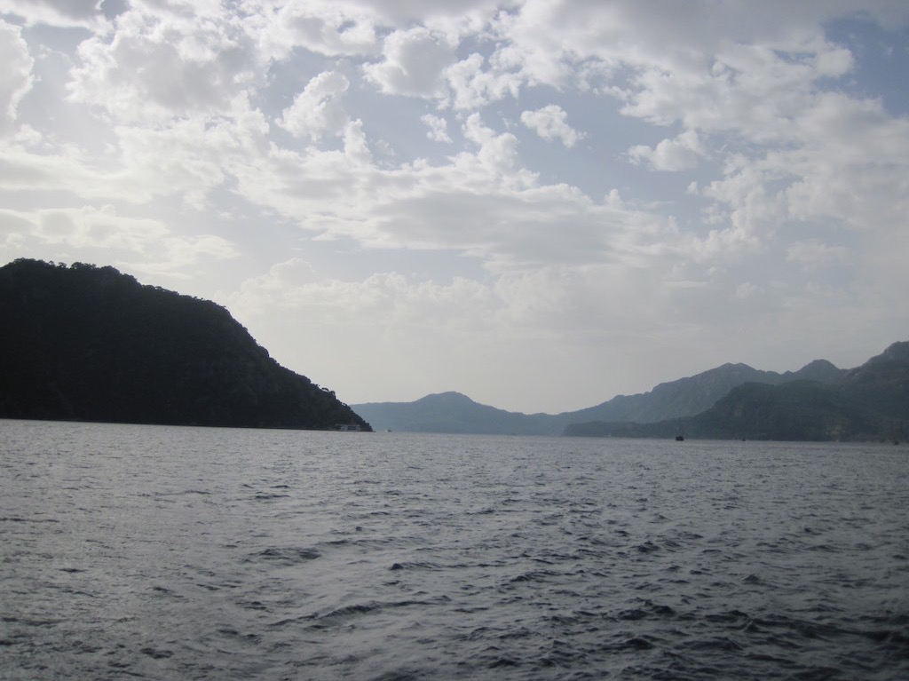 Wir sind schon ganz kribbelig, als wir um acht die Bucht von Ciftlik verlassen. Wind hat es nur wenig und der Schwell merkt man auch nicht gross. Wir umrunden den Leuchtturm von Kadirga Feneri und was ist das? Wind, Wellen genau auf die Nase. Super und das natürlich genau auf unserem Kurs. Es sind ja nur fünf Meilen, aber die scheinen fast endlos zu sein. Über zwanzig Knoten Wind wirken auf die Ulalena. Ich muss wieder einmal laut Fluchen. Der Bericht sagt nichts davon, aber eventuell kommt das Ganze von den Regenwolken ganz in der Nähe.