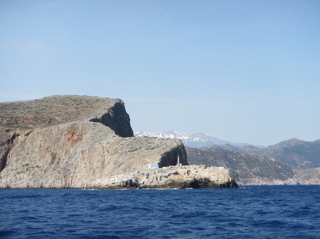 Das venezianische Bollwerk währe sicher noch interessant gewesen. So motoren wir der langen Mole entlang und biegen in Richtung Norden ab. Uuuu. Die Dünung hat es in sich. Auch der Wind hat mit über zehn Knoten fast zu viel für diese Strecke drauf. Wir müssen ja nur die paar Meilen hoch und ums Kap Stavros rum, dann wird es besser. Nach drei, nach ganzen drei Stunden haben wir es endlich querab.
