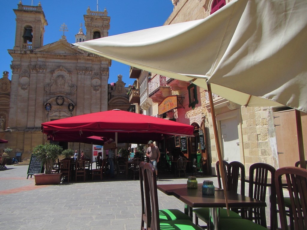 Am nächsten Tag heisst es wieder einmal Busfahren. Gaby liebt es über alles 😉 Der Bus kommt und alle drängen sich vor. Tja, warten und gewissen Leuten in die Beine fahren lässt sich fast nicht vermeiden. Bezahlen und – alle müssen wieder aufstehen. Der Rollstuhlplatz gehört uns. Danke. So fahren wir über Sannat, Munxar hoch zur Hauptstadt Victoria. Eigentlich wollten wir laufen, aber es währe schon eine gute Stunde und das bei der Hitze? Nö, Bus ist besser. Kaum ausgestiegen, setzen wir uns in ein Kaffee und geniessen die gerösteten Bohnen. Denn wir sind schon länger auf den Beinen. Waren schon im Hafen bei der PortPolice und haben bereits für Morgen Ausklariert. Weiter geht’s mitten ins Zentrum und zum Kirchplatz. Kurz reinschauen, schon wieder ein Gottesdienst. Wir geniessen einfach diese herrlich, unbekannte Sprache.