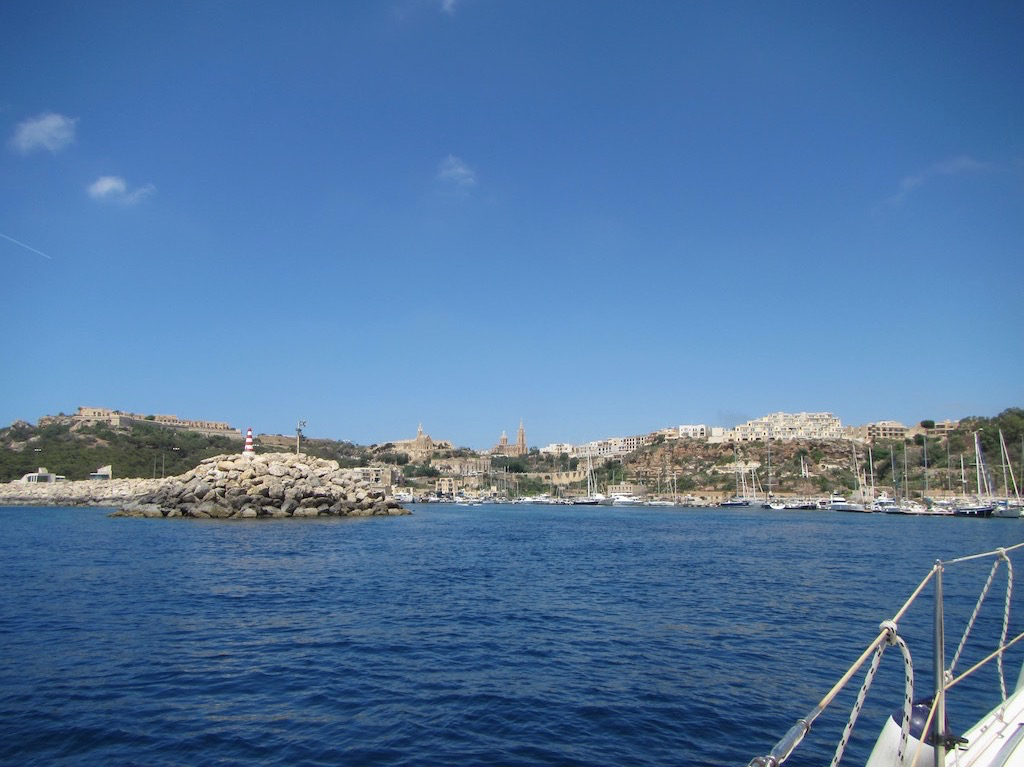 Das Wetter mit dem vielen Wind ist noch nicht ganz abgeklungen und so stapfen wir etwas gegen den Wind und vor allem die Wellen. Ist ja nicht weit. Ein Kap ist ein Kap und da ist immer was los. In unserem Falle ist es das Rdum l-Ahmar, kurz vor dem Sultan Rock. Etwas fluchen und schon sind wir rum. Aber der Wind hält weiterhin an. Sind wir doch zu früh gestartet? Nein, nein. Denn da vorne ist schon die Einfahrt in den Hafen von Mgarr, also die Insel Gozo.