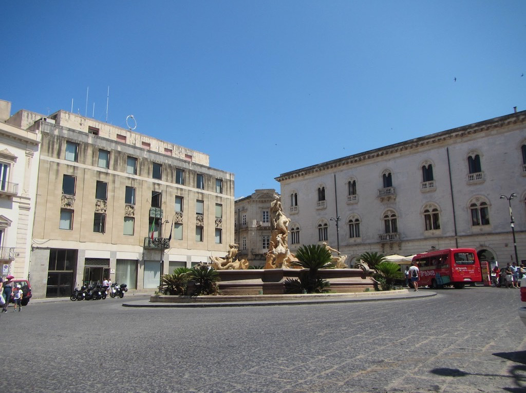 Zuerst aber noch am schönen Brunnen auf der Piazza Archimede vorbei.