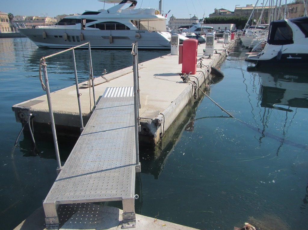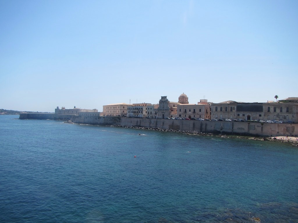 Die Altstadt, die ja Ortygia heisst, ist umrundet und bei den Brücken, das war ja früher alles Schützengraben, ist ja unsere Marina.