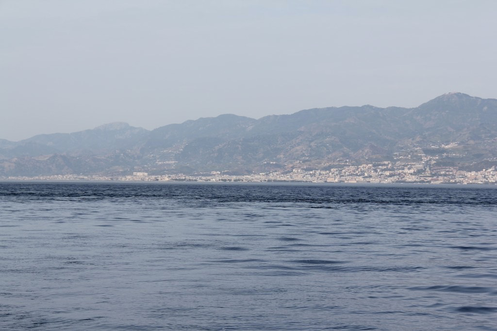 Recht schlafen konnten wir nicht. Viel zu gespannt warteten wir auf dem Morgen. War, ist die Planung gut? Sollen wir jetzt schon los oder erst kurz vor Niedrigwasser um kurz vor Zwölf? Unser Nachbar legt schon kurz nach Sieben ab und zieht in Richtung Norden. Was soll’s. Wir gehen auch. Zehn Minuten vor Acht starte ich den Motor und so legen wir vom schwelligen Steg in Reggio ab. Ganz, ganz nah am rechten Ufer wagen wir uns zur Engstelle. Zwar mit über 13 Knoten Wind gegenan, aber der Strom hilf. Was? Strom? Der sollte doch erst am Nachmittag so richtig einsetzten? Es muss also eine Gegenströmung geben und die nutzen wir aus. Kurz vor dem Punkt Pezzo haben wir das Maximum mit drei Knoten Strom.