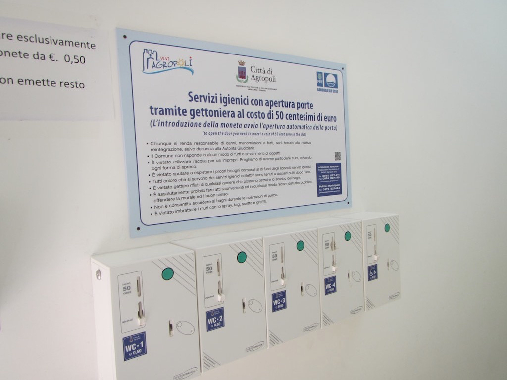 Ganz einfach. Einen 50er mitnehmen und schon kann man duschen. Alles einpacken, den letzten 50er herausklauben und schon rollen wir zu “unseren” Duschen. 50er rein und? Es ist ein WC! Wir, ich bin einfach zu blöd. Lesen sollte man. Die Duschen sind auf der anderen Seite. Also ein zweiter 50er. Super. Gaby lasse ich stehen und gehe auf die Suche nach einem 50er. Die Strassenarbeiter die gerade Pause haben, spendieren mir den einzigen 50er denn sie haben. Danke, danke! Zurück bei Gaby und einwerfen. Aber oha, da beträgt der Einsatz ein Euro. Also zwei 50er. Entnervt gehe ich nochmals auf die Suche. Bei einem Kiosk bekomme ich schliesslich noch einen. Endlich duschen. Beide Münzen rein und die Türe geht auf. Sie haben genau zehn Minuten Zeit. Wunderbar! Und das zu zweit mit umziehen und Stuhl und kein Platz? Wir schaffen das. Und wahrlich. Als ich dann endlich unter dem Wasser stehe geht tatsächlich erst nach dem Haarewaschen das rote Licht an. Kein Wasser mehr, die zehn Minuten sind um.