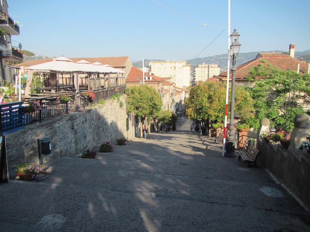 Viel einfacher. Doch der Aufstieg war trotzdem schön. Diesen Weg hätten wir vermutlich nie gefunden. Wieder unten in der Stadt, öffnet sich ein gewaltiger Platz. Voll von Beizen und Leuten. Es brodelt richtig. Wir setzen uns eine eine Beiz und genehmigen uns ein feines, wohlverdientes Bier mit einem Ice-Tee. Dazu Snacks in Hülle und Fülle. Brauchen wir noch Znacht? Nicht mehr viel. Wir geniessen diese Stimmen voll und ganz. Schade, schade dass wir morgen schon weiter müssen. Wir kommen fast nicht mehr los, es ist schon fast dunkel als wir uns aufmachen, eine Beiz zu suchen. Bruscetteria! Was ist das? Arme Leute essen sagt uns der Wirt. Probieren wir. Am steilen Hang, die Tische und Bänke sind grade aber die Beine nicht, lassen wir uns in dieses Geheimnis einführen. Mega fein. Ein Stück Brot und nicht nur Tomaten und Basilikum oben drauf. Es gibt einfach alles. Am Schluss sogar noch ein süsses, Haselnüsse und Honig. Einfach fein und der Preis ist wirklich für arme Leute. Den Weg zurück zur Ulalena ist fast wie ein Schauspiel. Diese Beleuchtung ist einfach fantastisch!