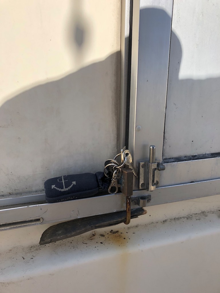 Ich bringe es nicht auf. Der Nachbar leiht mir kurz den WD40’er Spray und einen grossen Schrauber, schwupps ist der Rost weg. Auf geht’s. Rein, Logge rein, Batterie check und schon kommt der Kran. Was schon drei Uhr?